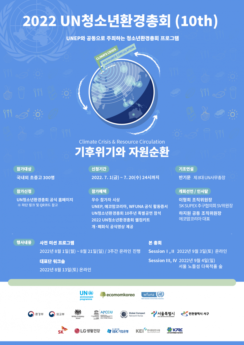 [모집완료] 2022 UN청소년환경총회 청소년대표단 모집~7/20(수)